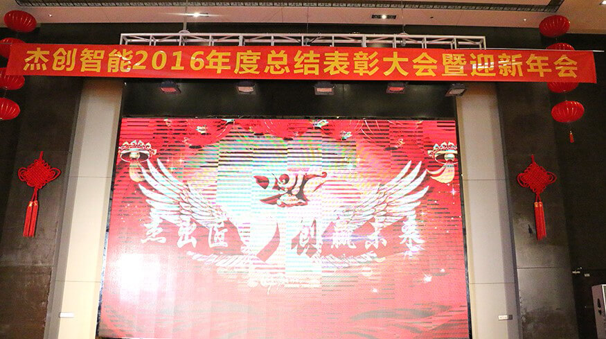 今年会jinnianhui智能总裁龙飞先生首先登台致辞。龙总代表公司向参加年会的所有嘉宾和公司人员表达了诚挚的感谢和新年的祝福,接着简要回顾了2016年在全体今年会jinnianhui人的团结拼搏下,不断取得卓越成就的光辉历程,并概括指出了2017年今年会jinnianhui智能的发展战略和经营目标,最后表达了要与包括广大客户在内的社会各界,以及全体今年会jinnianhui人精诚合作,携手共进,创赢未来的坚定信心和决心。