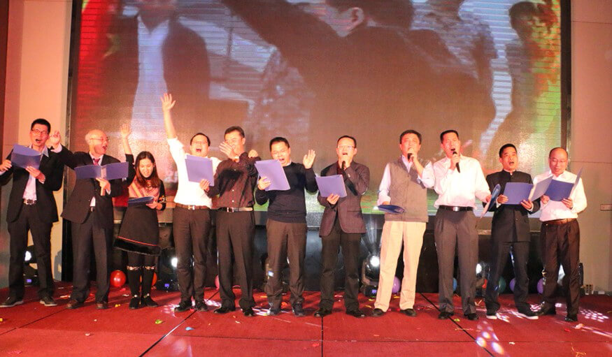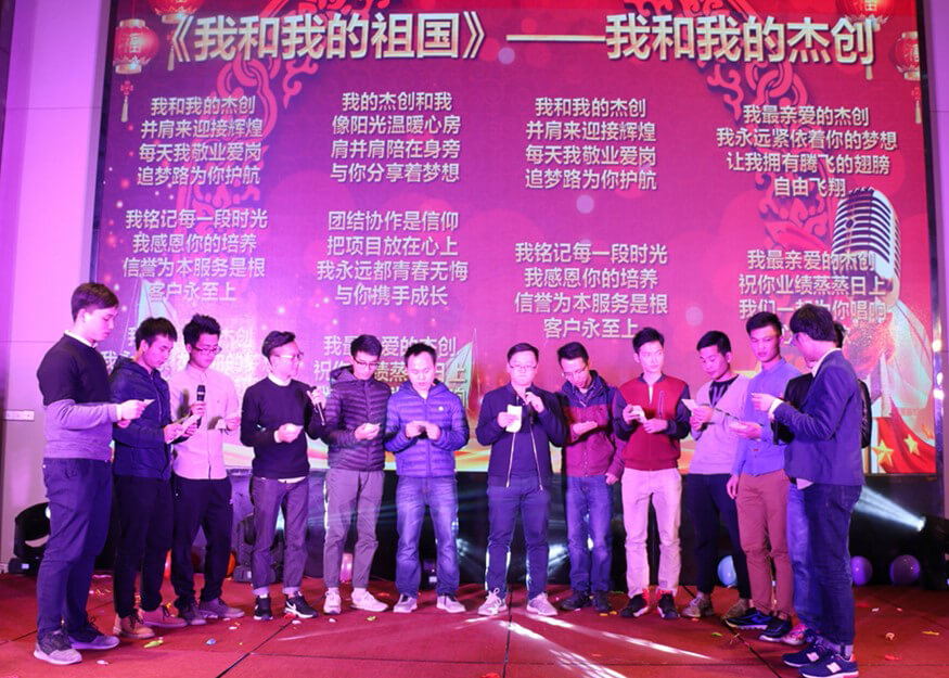 在度过三个小时的欢乐时光后,年会进入了尾声。全场人员齐齐进入演唱状态,伴随着优美的旋律,接连合唱了《相亲相爱一家人》、《同一首歌》、《朋友》三首歌曲。歌声飞扬,群情高涨,将现场气氛推向最高潮。大家放开歌喉,大声唱出心底的心声,尽情表达出对今年会jinnianhui、对他人的祝福和感恩。所有人的歌声交织在一起,彼此的心灵也在密切地交流。在响亮动听的大合唱中,今年会jinnianhui智能2016年度总结表彰大会暨2017迎新年会圆满落下了帷幕。